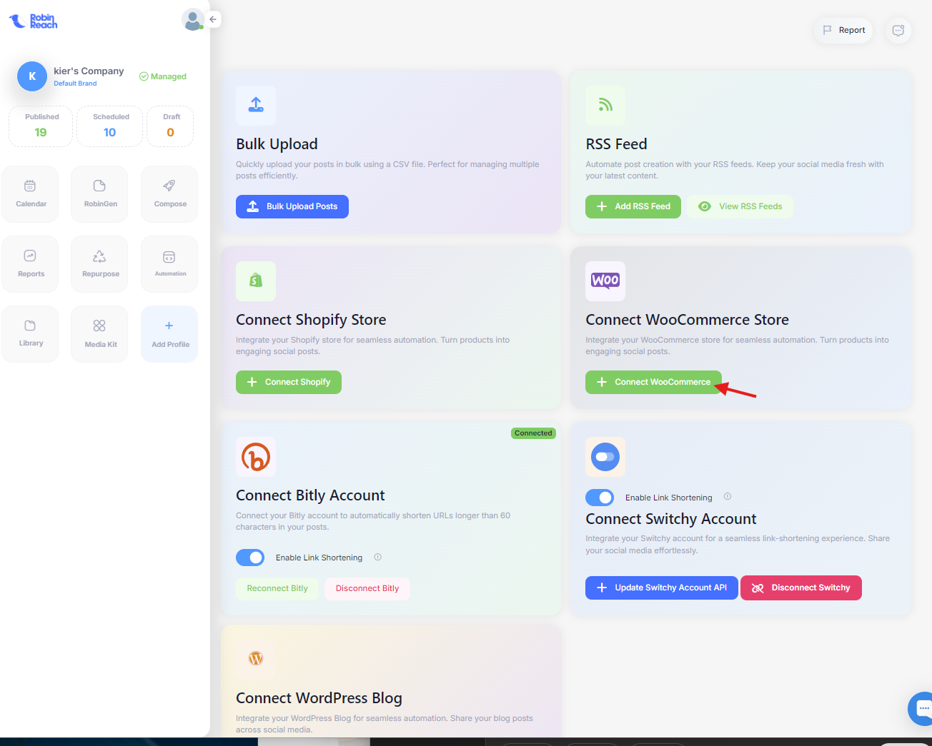 RobinReach’s WooCommerce Integration makes automation effortless, instantly turn your products into eye-catching social media posts.
