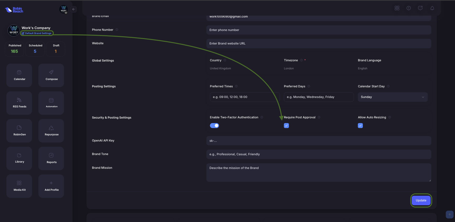 Step 1: Enable Post Approval (Brand Settings)