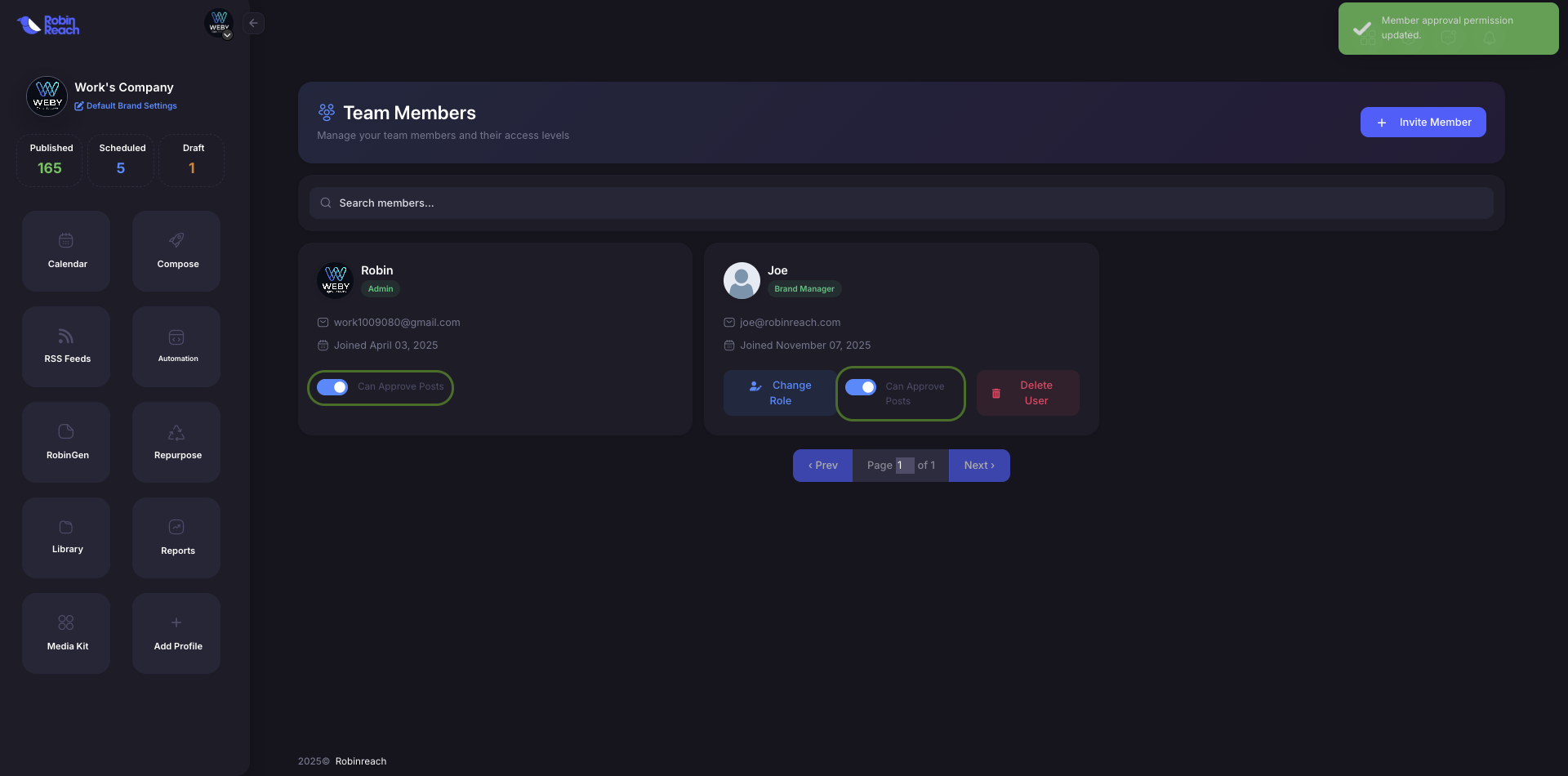 The Post Approval workflow in RobinReach provides a streamlined way to ensure content quality and brand consistency: