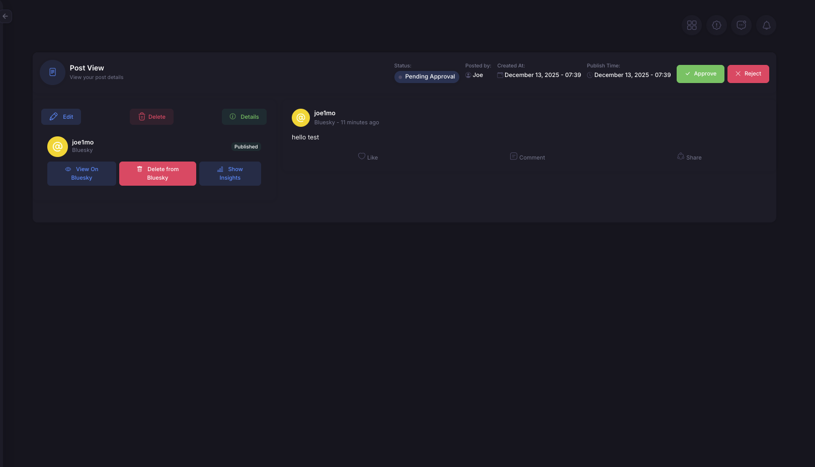 - If approved: You can now schedule or publish the post