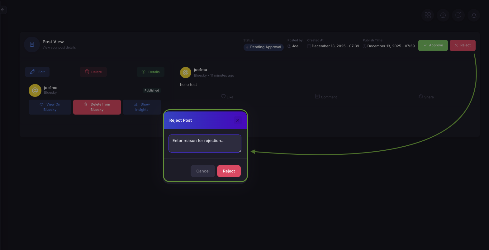 - Communication: Encourage approvers to provide constructive feedback when rejecting posts.
