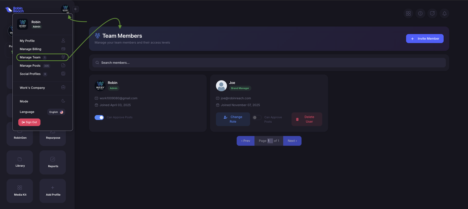- Navigate to Manage Team (or Team Management)