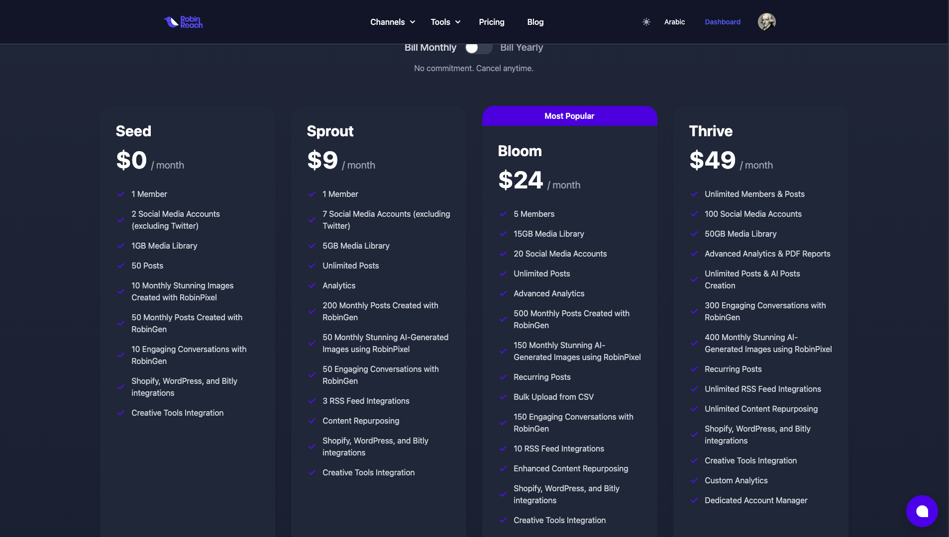 All our plans come with a free trial (no credit card required) and the ability to cancel anytime, so you can experience the power of RobinReach without any commitment.