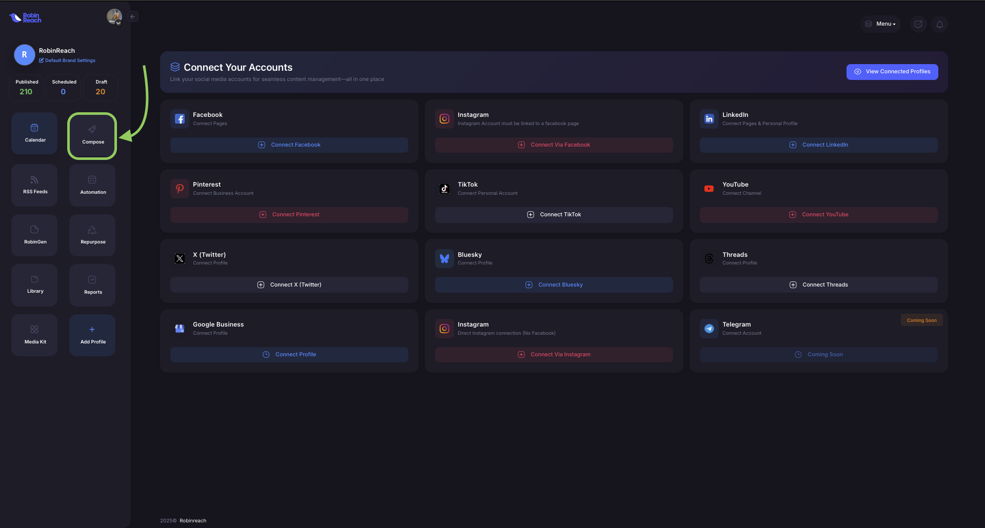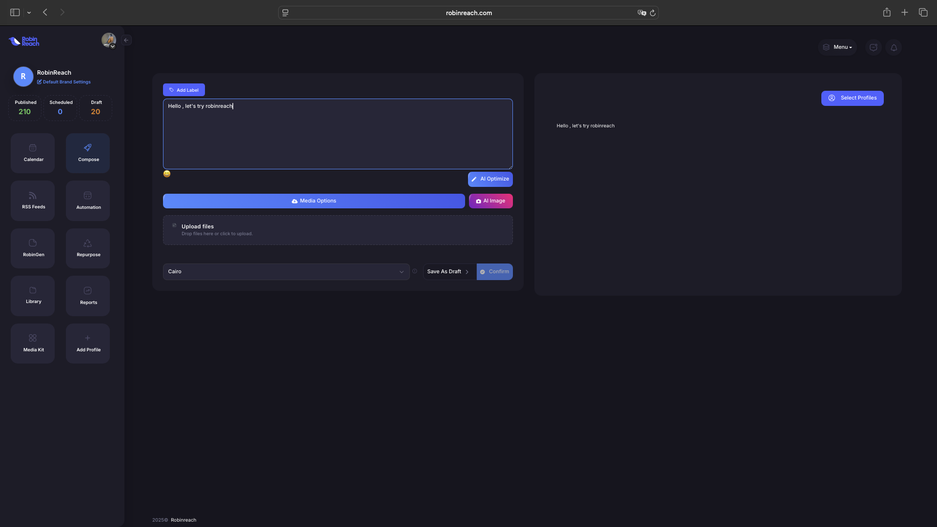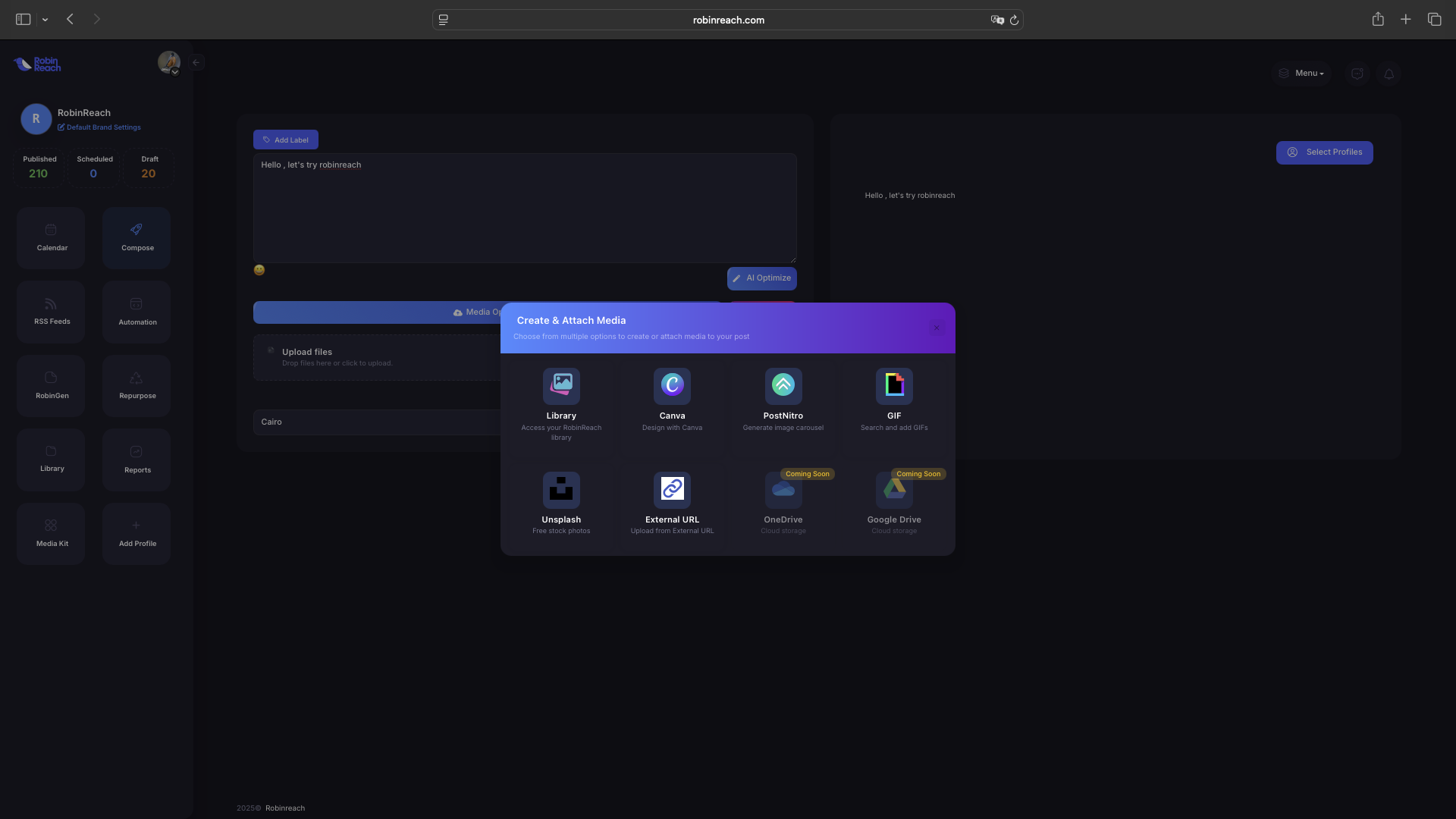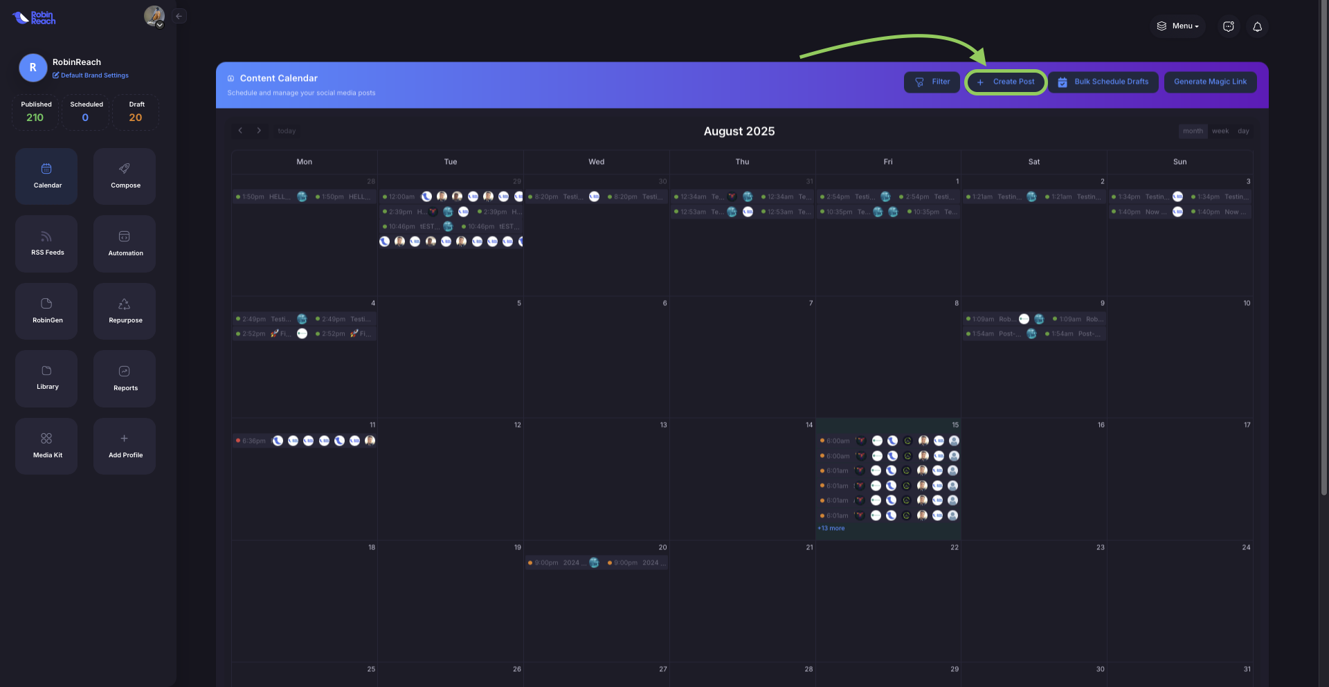 RobinReach's draft feature provides a powerful way to create, save, and manage your social media content before publishing. Drafts allow you to perfect your posts, collaborate with team members, and maintain a consistent content pipeline across all your social media platforms.