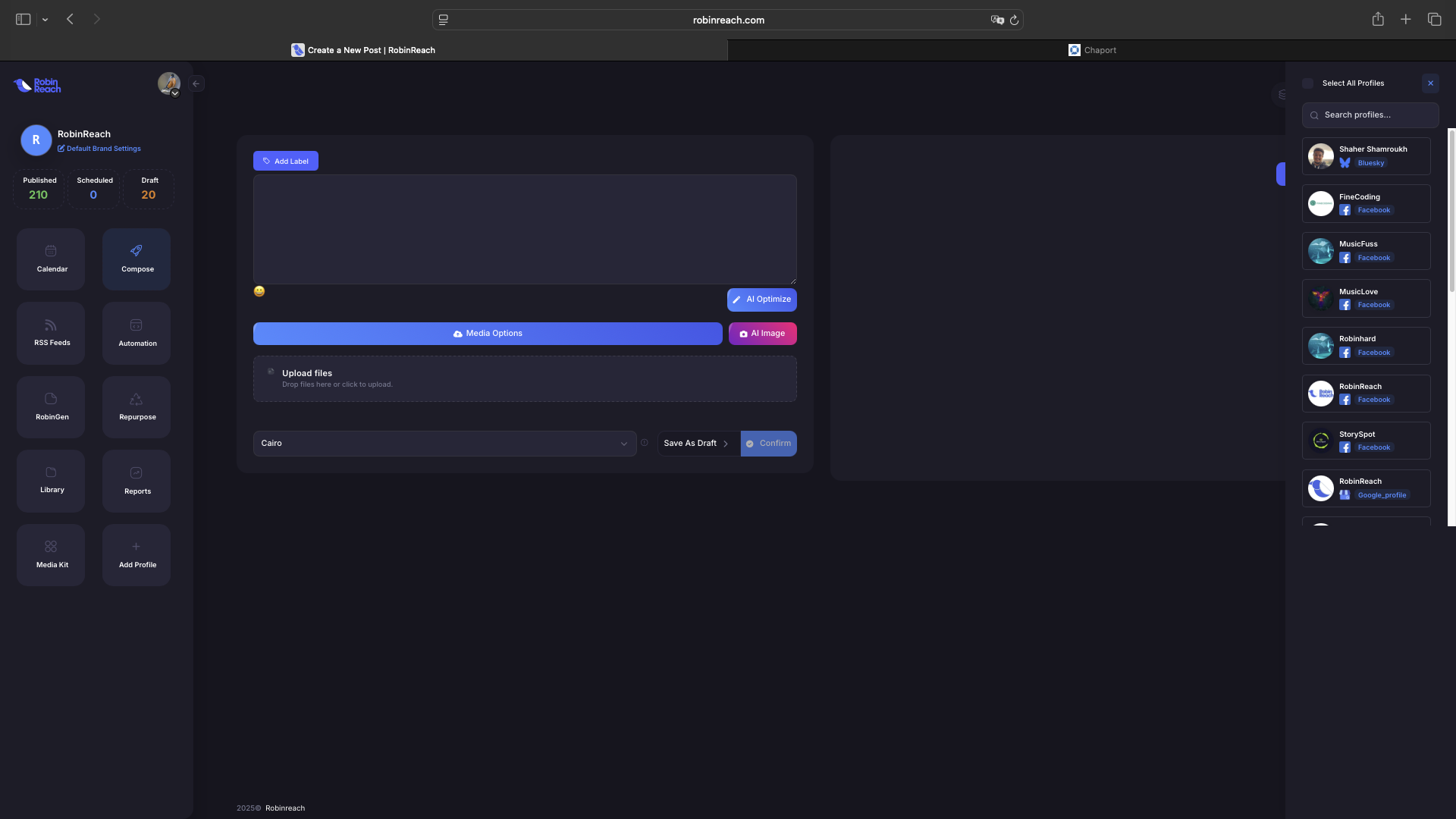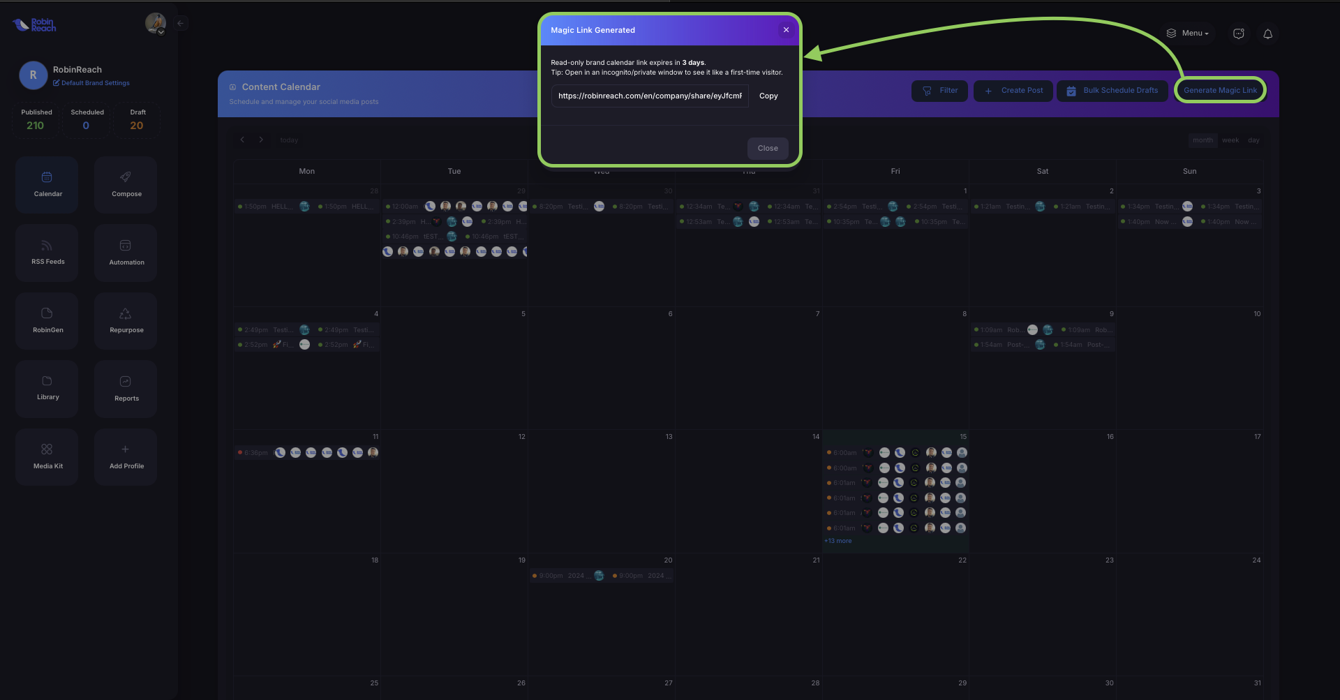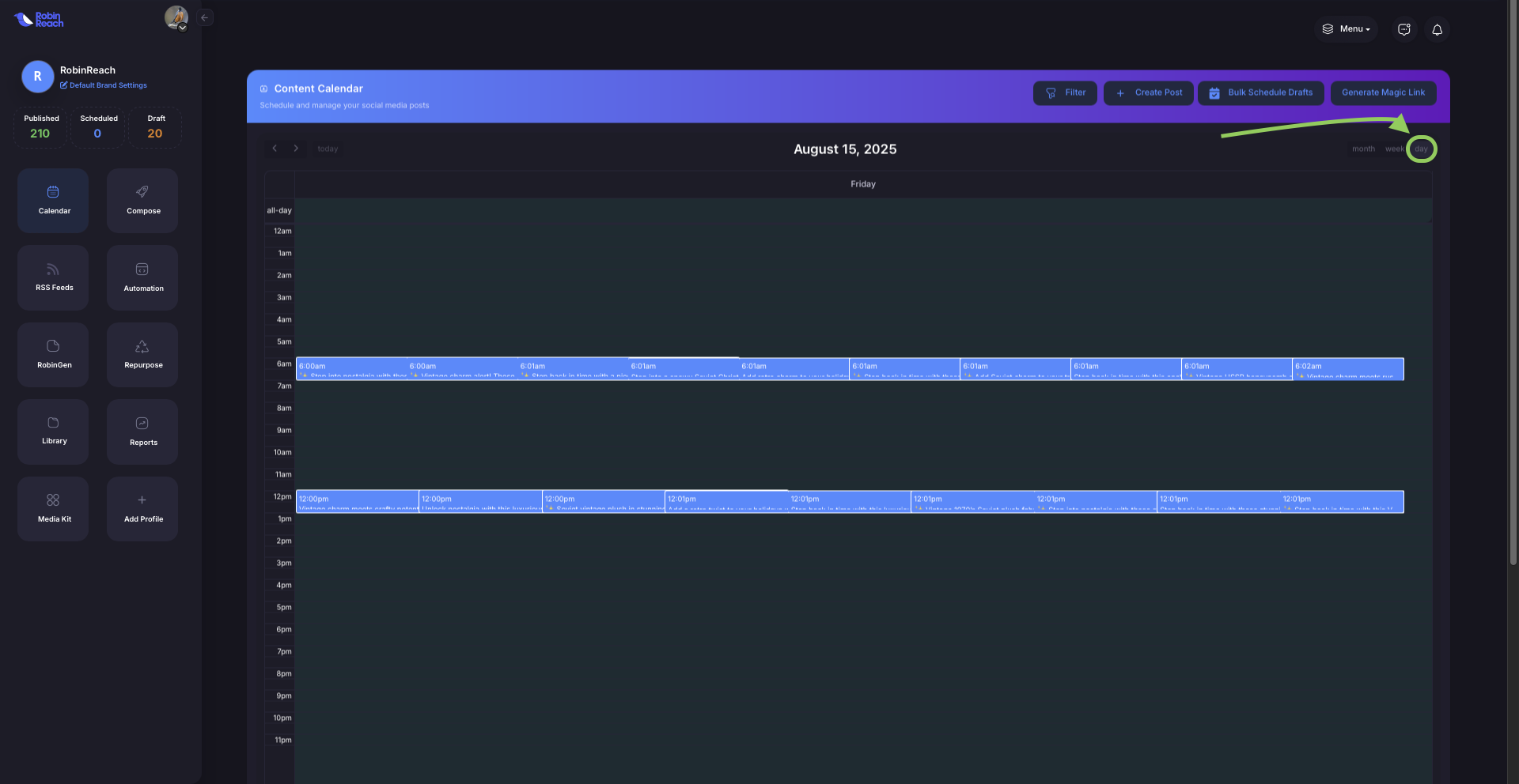 With RobinReach's calendar, managing your social media schedule has never been more efficient. Stay organized, maintain consistent posting across all platforms, and leverage powerful tools to optimize your content strategy.