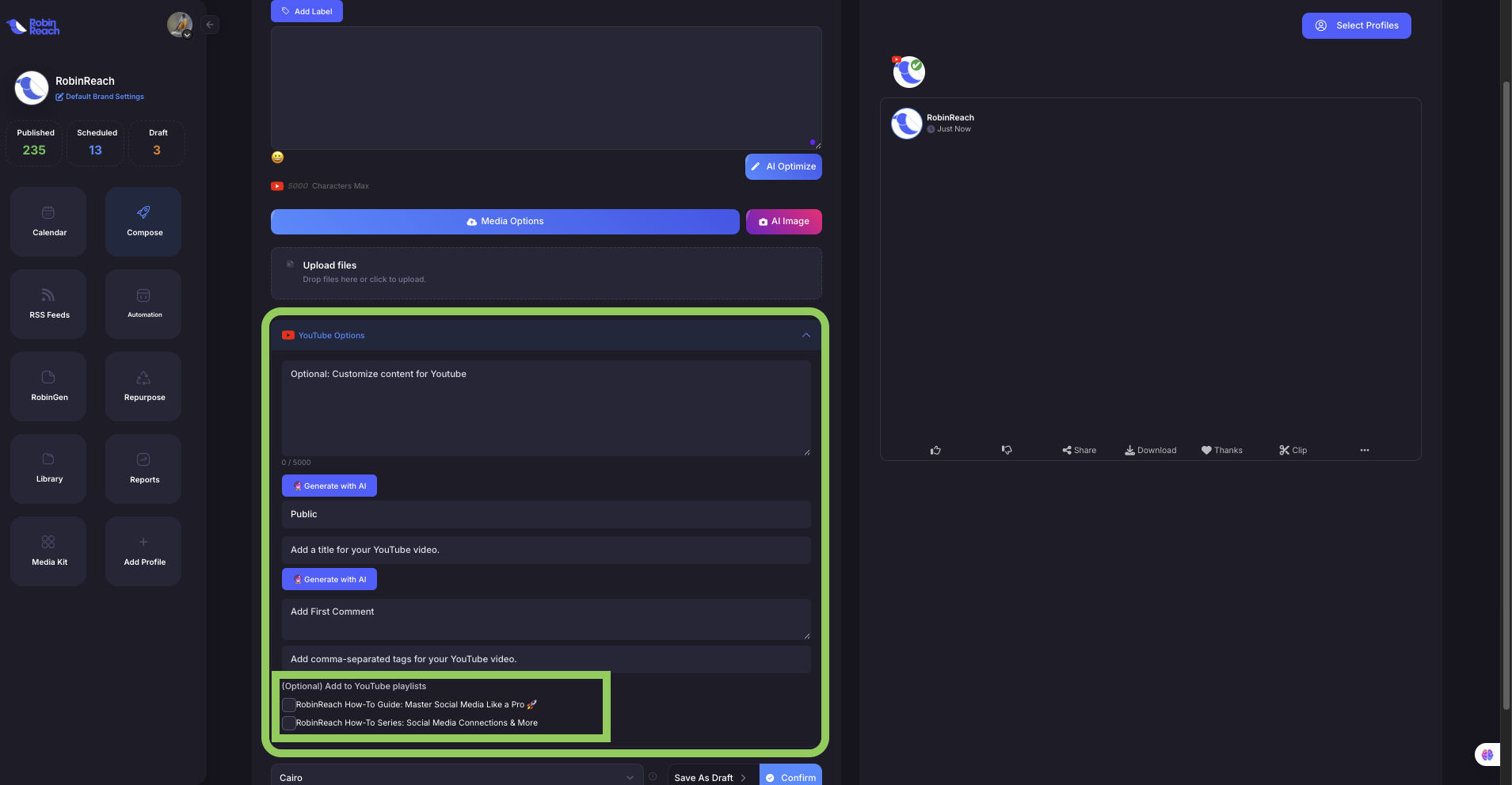 With RobinReach's platform-specific customization, your content performs better on each platform without requiring additional manual effort. Create once, optimize everywhere, and maximize your social media impact across all networks.